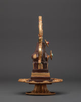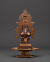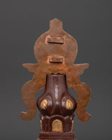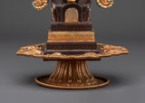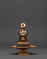 Elevate your spiritual practice with this exquisitely handcrafted Shrine Torma, a sacred artifact designed with meticulous precision and deep reverence. Measuring 28.5 cm in height and 16 cm in width, it is crafted from copper and enhanced with a gold plating that adds timeless elegance. The vibrant turquoise and artificial coral stones not only enrich their visual appeal but also carry profound spiritual symbolism, enhancing the power of your offerings. Essential for Tibetan rituals and spiritual ceremonies, this Shrine Torma serves as a meaningful vessel for offerings to deities, helping deepen your connection during prayers and sacred rites. Its presence brings both beauty and spiritual significance to your altar, making it an indispensable addition to your practice.