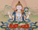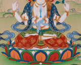 13-Inches Chenrezig Thangka | Four Armed Avalokiteshvara | Karma Gadri Tibetan Art