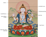 Authentic 13-Inches Chenrezig Thangka | Bodhisattva of Mercy | Buddhist Art with 24K Gold