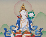 Traditional Hand-Painted White Tara Buddha Art | Female Buddha | Peace and Longevity