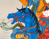 The Achi Chokyi Drolma Thangka, portraying the revered Protector of Souls, is a testament to both artistry and spirituality. Meticulously hand-painted on a canvas woven from pure cotton, this Thangka showcases the formidable presence of Achi Chokyi Drolma in exquisite detail. The use of natural stone colors lends an earthy and grounding palette to the artwork, enhancing its spiritual significance. Adorned with accents of genuine 24K gold, it emits a celestial radiance that symbolizes the deity's transcendent blessings and protection. Achi Chokyi Drolma's compassionate gaze, her myriad of arms, and her serene yet fierce countenance, are all brought to life with vivid artistry. As the Protector of Souls, she serves as a beacon of solace and empowerment, watching over and guiding individuals on their spiritual journey. This Thangka is not just a work of art but a profound spiritual conduit, inviting us to connect with Achi Chokyi Drolma's protective and compassionate energy, and encouraging us to seek her refuge in times of need.