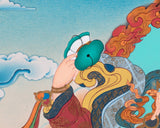 Discover the profound wisdom and spiritual grace of Achi Tsogyal Thangka, the revered female master in Tibetan Buddhism, through this captivating thangka painting. She is a significant figure in Vajrayana practice, renowned for her spiritual attainments and role as Guru Padmasambhava's foremost disciple. This thangka beautifully depicts her in meditation posture, exuding a sense of inner tranquility and profound insight. With her right hand holding a damaru and her left hand a skull cup, she embodies both compassion and fierce determination. The vibrant acrylic colors and intricate details on cotton canvas bring her presence to life. As a symbol of enlightened feminine energy, Achi Tsogyal's image inspires devotion and empowers practitioners on their spiritual journey.