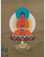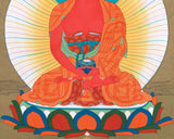 Amida Buddha Thangka - Sacred Tibetan Art with Deep Red Hues