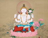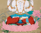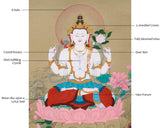 Avalokiteshvara Chenresig Thangka | Hand-painted Thangka on Cotton Canvas