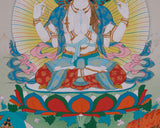 Hand-Painted Avalokitesvara Thangka | Karma Gadri Art on Cotton Canvas