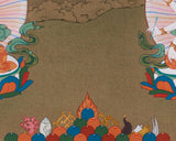 Together, these three deities form a powerful longevity, making this thangka a spiritually enriching centerpiece for those seeking health, vitality, and protection. It serves as a visual representation of Buddhist wisdom and a sacred talisman, encouraging devotion, inner healing, and life-force empowerment, whether placed on a meditation altar or sacred wall art.