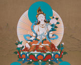 Tibetan Bodhisattva of Longevity Thangka | A Divine Trio Bestowing Vitality, Purification, and Peace