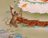 The natural pigments would lend a subtle yet vibrant color palette to the thangka, creating a harmonious and earthy tone that enhances the spiritual ambiance of the artwork. The use of these pigments also reflects a commitment to traditional thangka painting techniques, highlighting the artist's skill and dedication to the craft.