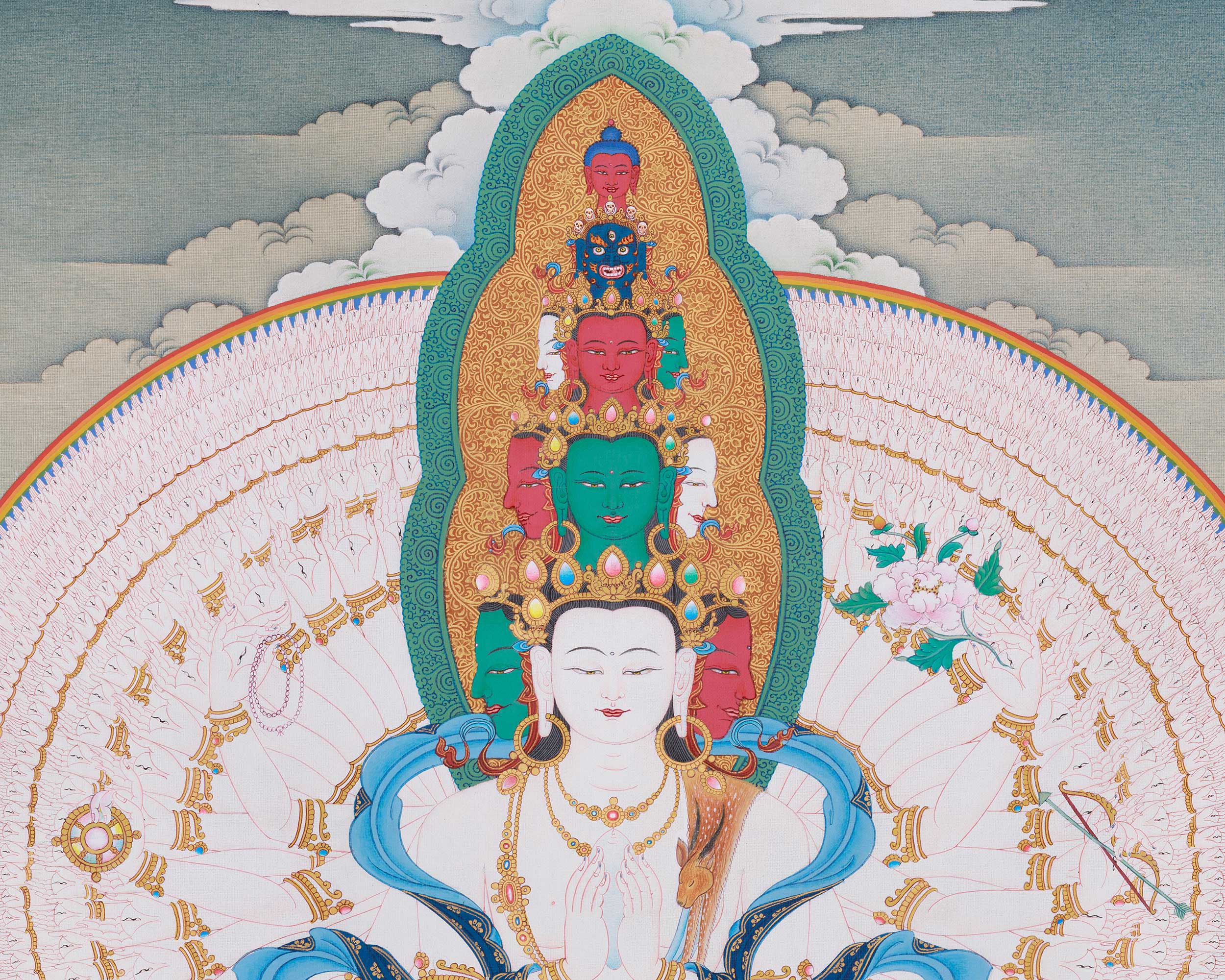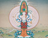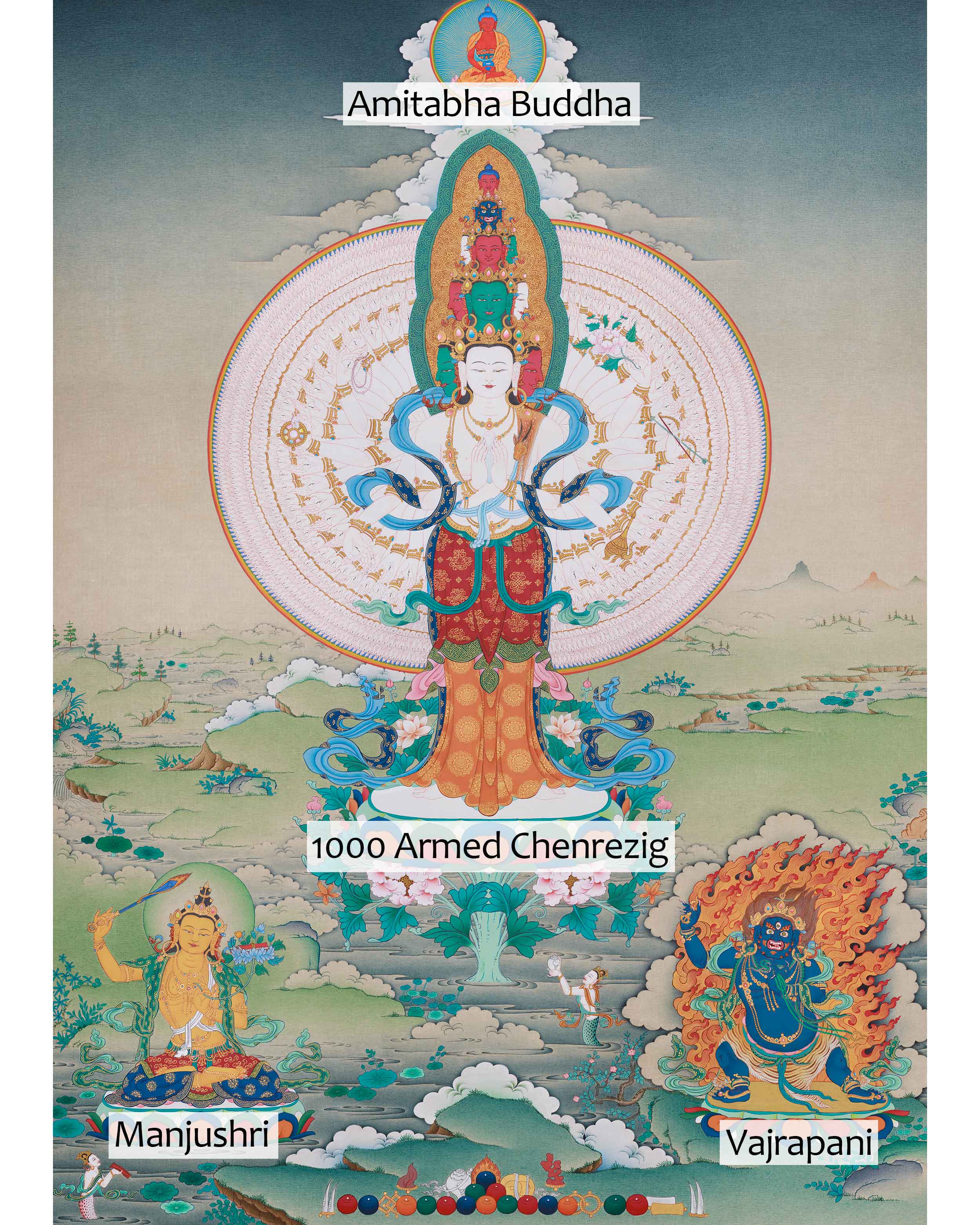 Original 1000 Armed Avalokiteshvara Art | Thangka Painting with Manjushri, Vajrapani & Amitabha