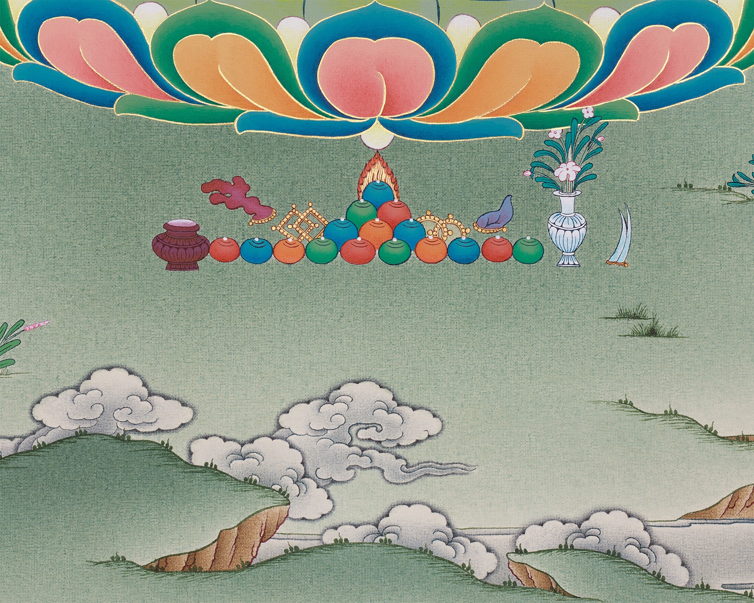 As you requested for consecrations/blessings, we can take the thangka to nearby monasteries/Rinpoches from the Boudha Stupa. We kindly ask that you contribute $50 to the monasteries for these blessing/consecration services.