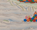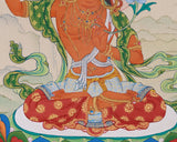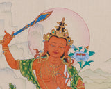 The use of 24K gold enhances his divine nature, and the natural stone colors infuse the thangka with spiritual vibrancy, symbolizing the grounded nature of wisdom and its transformative power. This artwork serves as a powerful tool for meditation, helping practitioners cultivate wisdom, clarity, and spiritual insight in their lives.