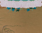 This Thangka embodies the esteemed Karma Gadri style, a painting method celebrated for its delicate lines and balanced colors. Every brushstroke is meticulously placed, allowing each detail, from the Buddha’s robe folds to the tranquil scenery, to evoke spiritual richness. As a unique artwork, it merges artistic mastery with spiritual importance, becoming a valued piece for any practitioner or collector aspiring for a deep bond with the Buddha’s enlightening essence.