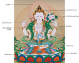 33cm Four Armed Chenrezig, Bodhisattva of Compassion | Avalokiteshvara Thangka