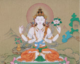 Four Armed Chenrezig Thangka | Avalokiteshvara’s Boundless Compassion
