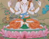 Four Armed Chenrezig Thangka | Sacred Art of Compassion, Devotion & Enlightened Presence