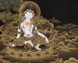 Beautifully created, this hand-painted thangka features the Two-Armed Avalokiteshvara, made on high-quality cotton canvas with genuine 24K gold and vibrant acrylic colors. Painted in the rare and refined Nakthang style—a traditional Tibetan technique that features radiant gold against a deep black background—this piece showcases incredible detail and striking contrast. Using 24K gold not only enhances the sacred presence of the deity but also represents purity, incorruptibility, and the enlightened qualities Avalokiteshvara embodies. The carefully layered acrylic colors add vibrant accents, increasing the overall visual depth and spiritual resonance of the artwork.