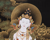Gold on Black Two-Armed Avalokiteshvara Thangka | Bodhisattva of Infinite Compassion