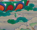 Embrace the profound wisdom of the Great Mother Prajnaparamita with this intricately hand-painted thangka, a symbol of transcendental insight and spiritual awakening. Created on premium cotton canvas, it features vibrant natural stone colors and 24K gold to accentuate sacred details. The traditional Karma Gadri style of the thangka emphasizes clarity and spaciousness. The style’s fluid lines and harmonious palette guide the viewer’s focus to the central figure, creating an immersive spiritual experience.