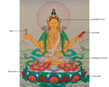 Owning this thangka invites an atmosphere of wisdom, peace, and contemplation, a powerful reminder of the journey toward spiritual awakening. This painting is perfect for practitioners, collectors, or anyone seeking inspiration from one of Buddhism's most revered deities, combining artistic beauty with deep symbolic meaning.