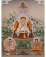Guru Marpa, Milarepa, and Je Tsongkhapa Thangka | Tibetan Buddhist Masters Artwork