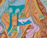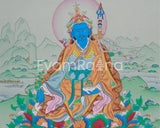 Each detail has profound iconographic meaning and is drawn according to the guidelines found in traditional meditation manuals. It is a meaningful addition to your altar, shrine, or personal space because of its intricate patterns and beautiful colors, which encourage meditation and spiritual connection. The essence of enlightenment and healing energy in Buddhist practice is captured beautifully in this simple yet profound canvas painting.
