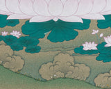 The Historical Buddha Thangka is a truly outstanding piece, prepared from vibrant materials that ensure its beauty and spiritual significance. The cotton canvas serves as an ideal base, offering a flexible surface for the artist's detailed work. Natural stone colors are combined to create rich, brilliant hues that express the essence of Tibetan Buddhist creativity. 24K gold accents are delicately applied to enhance the visual impact of the Buddha's image, giving the thangka an ethereal, light-reflecting quality that reflects its sacred nature.