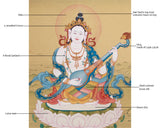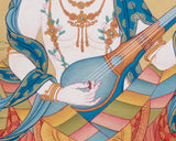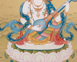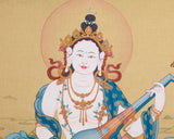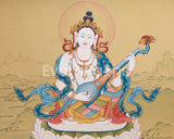 Mother Saraswati Thangka | Sacred Art of Music, Wisdom, and Spiritual Enlightenment