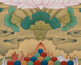 Discover our exquisite Mother Saraswati Thangka, a remarkable hand-painted artwork that beautifully embodies the divine qualities of Saraswati, the revered Goddess of wisdom, knowledge, and the arts. Created on cotton canvas using natural Lhasa stone colors and 24K gold accents, it offers a unique dimension and spiritual significance. This luminous, sacred presence invites blessings of wisdom, creativity, and divine protection. It's an ideal addition to any sacred space, altar, or meditation room, offering beauty and spiritual depth.