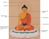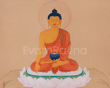 Namo Gautama Buddha, we humbly bow before your enlightened presence, seeking blessings of wisdom, compassion, and peace. The Buddha Thangka is a unique work of art from our Enlightenment Studio. It is meticulously hand-painted using acrylic colors on fine cotton canvas and adorned with genuine 24K gold. The central figure radiates clarity and meditative stillness due to the thangka's exquisite line work, spacious composition, and gentle natural tones, all of which are executed in the traditional Karma Gadri style.