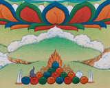 Created in the Karma Gadri style, this Thangka showcases acrylic colors and 24K gold embellishments, imparting a sense of timeless beauty and spiritual resonance. The intricate patterns and details reflect the rich artistic traditions of Tibetan Buddhist art, where every brushstroke is purposeful and filled with meaning.