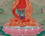The Ruby Red Amitabha Buddha Thangka depicts the Buddha of Infinite Light and Compassion, symbolizing wisdom, infinite love, and spiritual enlightenment. Hand-painted on cotton canvas, it features vivid natural stone colors and authentic 24K gold. The natural stone hues, sourced from the sacred Tibetan plateau, offer deep, vibrant colors that bring Amitabha's divine form to life, while the 24K gold accents highlight sacred details, such as his robe and alms bowl. Made in the traditional Karma Gadri style, this thangka seamlessly blends exquisite iconography with spiritual grace.