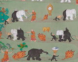 (Stages 5 & 6) The Power of Comprehension: As the monk guides the elephant, and the monkey follows along, it symbolizes the mind finding its footing. The path grows clearer, and the flames that once lit it begin to fade.