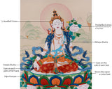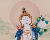 Divine Sita Tara Goddess Thangka | White Tara Buddha Art | Guardian of Health and Peace Amidst Natural Splendor