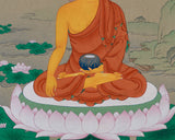 Historical Gautama Buddha Painting | Sacred Thangka Painted with Natural LHASA Stone Hues