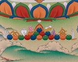 As you requested for consecrations/blessings, we can take the thangka to nearby monasteries/Rinpoches from the Boudha Stupa. We kindly ask that you contribute $50 to the monasteries for these blessing/consecration services.