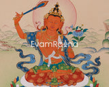 Owning this spiritual art of Manjushri Bodhisattva Thangka means inviting wisdom and positive energy into your life. It functions as a meditation aid, a focal point in your sacred space, or an artistic centerpiece, a powerful reminder of the quest for knowledge and eradicating ignorance.
