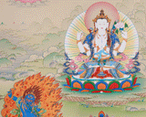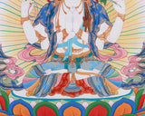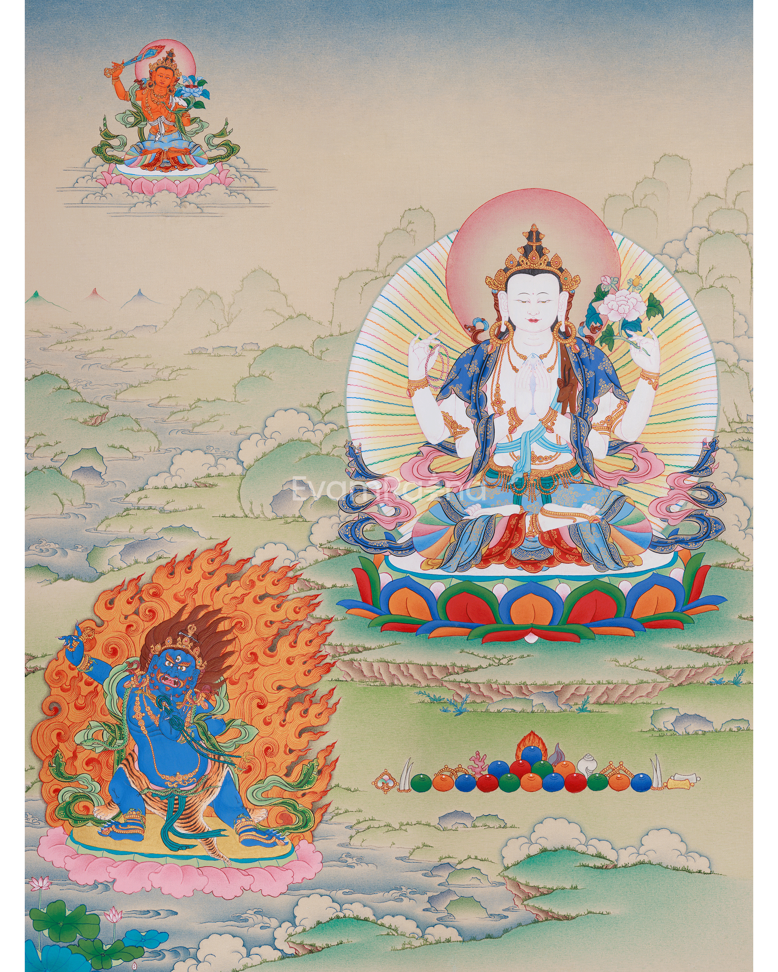 Thangka of Four-Armed Chenrezig, Compassion Buddha | With Manjushri and Vajrapani