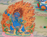 This thangka showcases these three Bodhisattvas, each adding their own special touch of compassion, wisdom, and strength. The figures of Manjushri and Vajrapani are thoughtfully positioned above and below Chenrezig, symbolizing the vital support and protection that wisdom and power bring to compassion. This arrangement highlights the profound connection between these qualities, resulting in a meaningful and uplifting piece for those seeking spiritual guidance and protection.