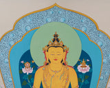 Placing this painting in your meditation room, altar, or living space can foster peace, inspiration, and spiritual aspiration. The vivid colors and shining gold accents not only uplift the spiritual environment but also remind viewers of Maitreya's future coming and his guidance for a brighter future.
