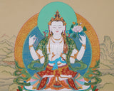 The Deity of Compassion, Chenrezig Thangka | Avalokiteshvara Painting