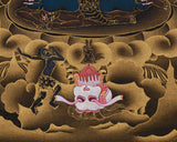 The Nakthang style, featuring stunning 24K gold accents against a black background, delivers a striking visual that heightens Mahakala’s fierce yet compassionate presence. Its detailed craftsmanship and rich colors emphasize the intensity and calmness of the Wrathful Deity, transforming this thangka into both a beautiful artwork and a potent spiritual instrument. Perfect for those seeking protection, strength, and clarity, this piece can elevate your spiritual practice or fill your space with Mahakala’s powerful but gentle energy.