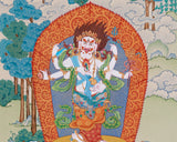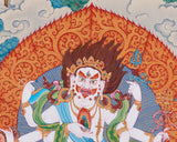 Sacred Hand-Painted Thangka Depicting the Wrathful White Mahakala