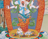 This Wrathful White Mahakala Thangka shows a fierce yet compassionate deity who protects practitioners, removes obstacles, and attracts material and spiritual riches. This Thangka, hand-painted on cotton canvas, exemplifies traditional Tibetan art's delicate, time-honored method. The vibrant colors are made with natural stone pigments, maintaining the artwork's authenticity and spiritual essence. Genuine 24K gold is applied to highlight key components, adding elegance to the artwork. The thangka is painted in the Karma Gadri style, known for detailed, harmonious designs that give the work spiritual and artistic significance.