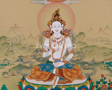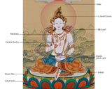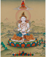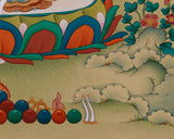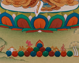Presenting a breathtaking Yeshe Tsogyal painting, created with utmost care on high-quality cotton canvas using genuine natural Lhasa stone pigments and 24K gold leaf. The Lhasa pigments, sourced from the sacred Tibetan plateau, bring vibrant and lasting colors infused with spiritual purity. The 24K gold accents enhance the artwork's divine qualities, all created in the traditional Karma Gadri style, renowned for its elegant composition, delicate landscapes, and refined iconography that honors Tibetan Buddhist artistic heritage.