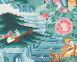 -Rotate thangkas between display and storage on a regular basis, two to four times a year, to reduce the amount of exposure to light. Keep away from sunlight and humidity.