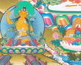 This thangka is both a sacred object for meditation and a stunning work of art, offering blessings of compassion, protection, wisdom, healing, and spiritual power and enhancing any space with its spiritual richness and beauty.