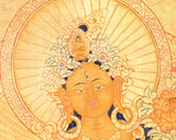 24K Gold Style White Tara Followed By Other Bodhisattvas | Original Hand-Painted Female Bodhisattva Art | Wall Hanging Decoration Art