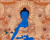 24K Gold Style Medicine Buddha Thangka | Meditation Altar