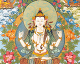 4 Armed Chengrezig Thangka Thangka Art | Bodhisattva Guanyin Chenrezig Painting