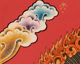 Mahakala looks wrathful and is bedecked with serpents. He wears a garland of severed heads and a crown of five skulls, which represent five poisons of delusions namely lust, hatred, ignorance, pride, and jealousy transformed into the wisdom of five Buddhas. His right-hand holds a karter symbolizing that he has cut off the ego, clinging, and attachment. His left-hand holds a kapala filled with blood symbolizing the subjugation of the evil. Since, there are many forms of Mahakala such as two-armed, four armed, and multiple-armed; the deity holds different objects according to its different manifestations. He also wears a tiger skin symbolizing the purification of desires. He has three eyes symbolizing his clear comprehension of Three times. He looks ferocious against a background of blazing fire.His two feet symbolize wisdom and method. His ferocious appearance aside, Mahakala is a manifestation of Avalokiteshvara, the embodiment of universal compassion.